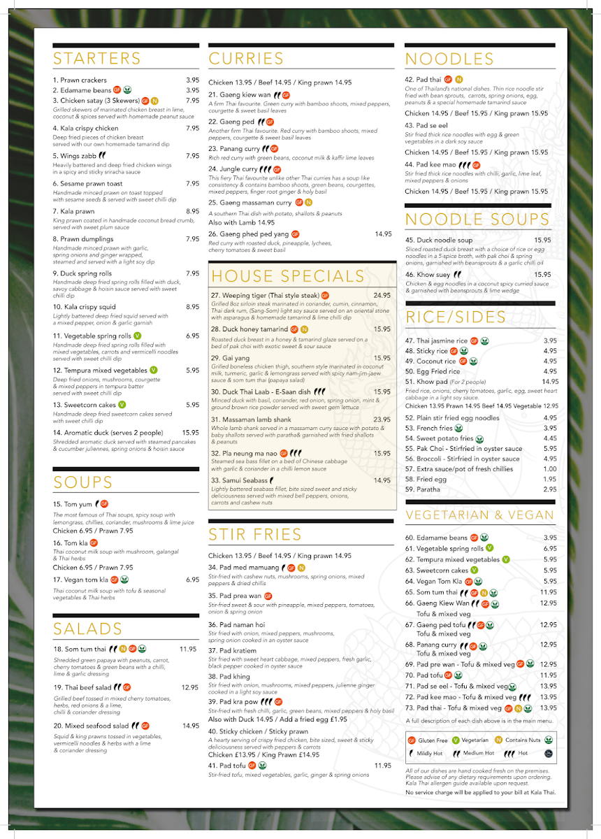 Whether you're a Thai food enthusiast or a first-timer, the Kala Thai Restaurant & Bar Menu promises a rewarding dining experience that captures the heart of Thailand in the heart of Bournemouth.
